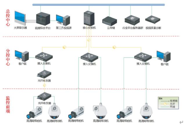 医院安防监控系统物理拓扑如下: