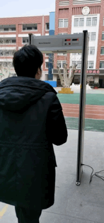 zoty中欧人体测温安检门应用于学校防控,高精度微型24小时动态红外体温监测仪,全方位对通行人员进行体温扫描筛查。